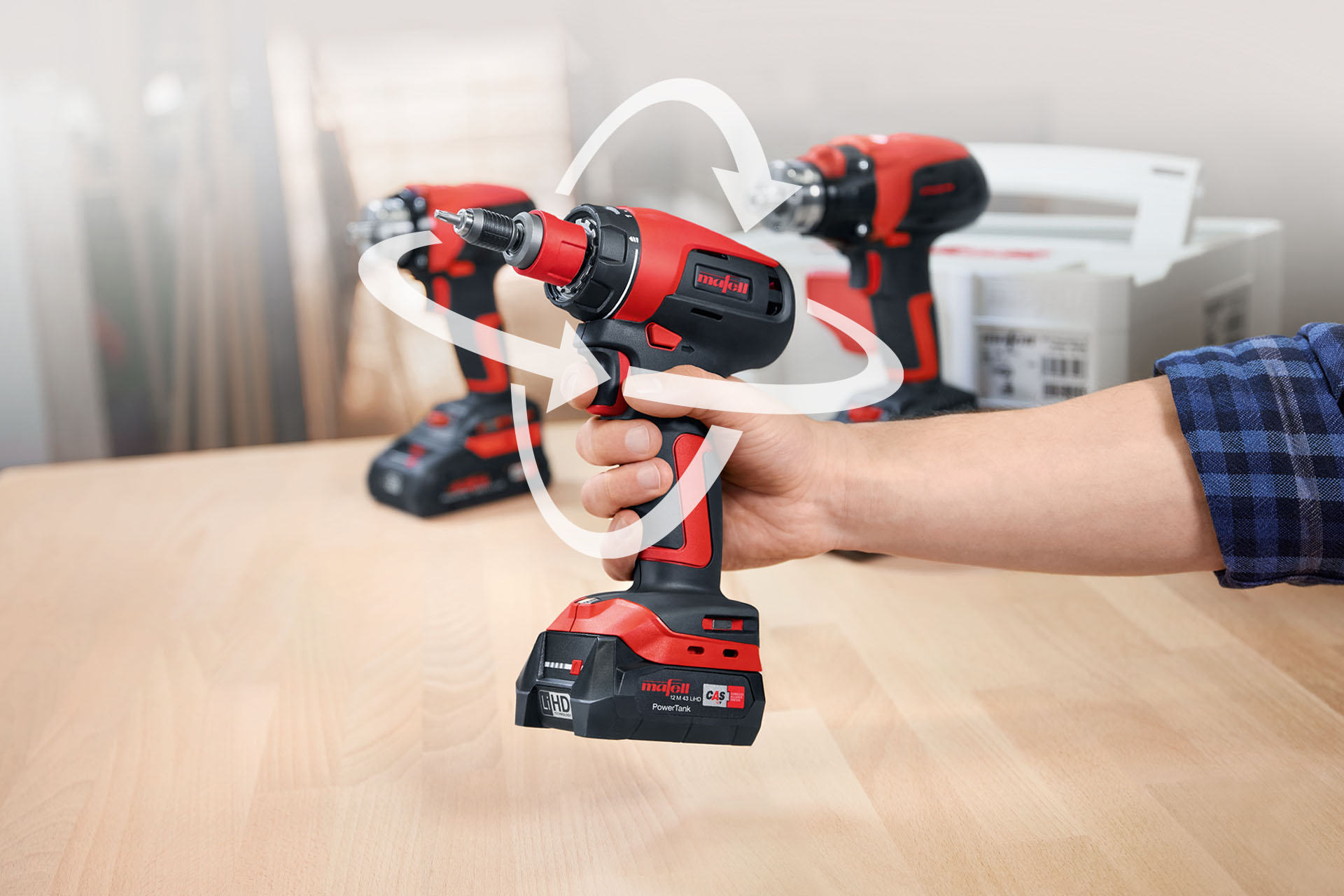 Con el ErgoBalanceConcept de MAFELL, la herramienta se ha optimizado para trabajos prolongados o en altura. Esto no solo permite trabajar con precisión, sino que también garantiza un guiado óptimo desde el punto de vista ergonómico. Así, evita eficazmente la fatiga, dolores o calambres.